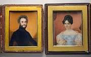 portraits of an Officer and a Lady, both seated: he, wearing blue coat