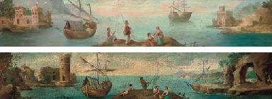 | A Mediterranean coastal inlet with anglers and a tower; and A Mediterranean coastal inlet with anglers, shipping and two castles | |