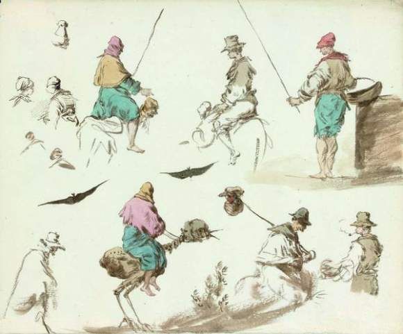 | Feuille d'études avec des cavaliers sur des animaux fantastiques | |