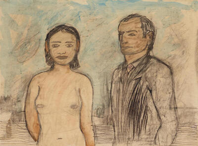 Charcoal and watercolour on paper