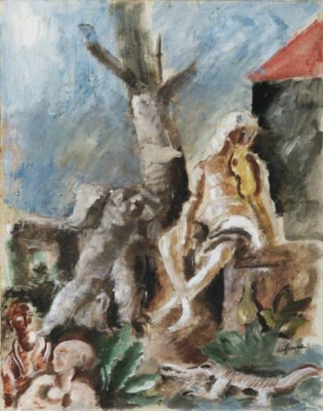 Trois figures et un crocodile