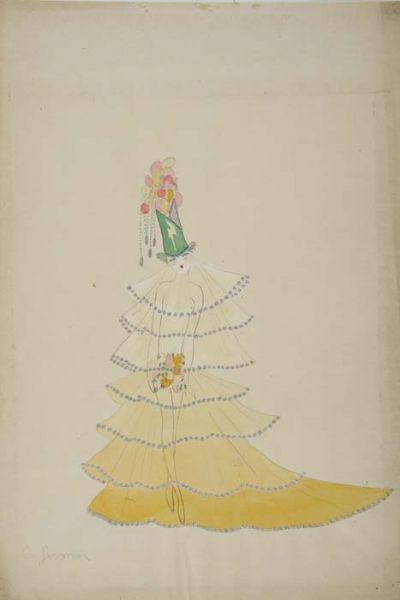 [NUDE IN YELLOW GOWN.] Water color study. 1927.