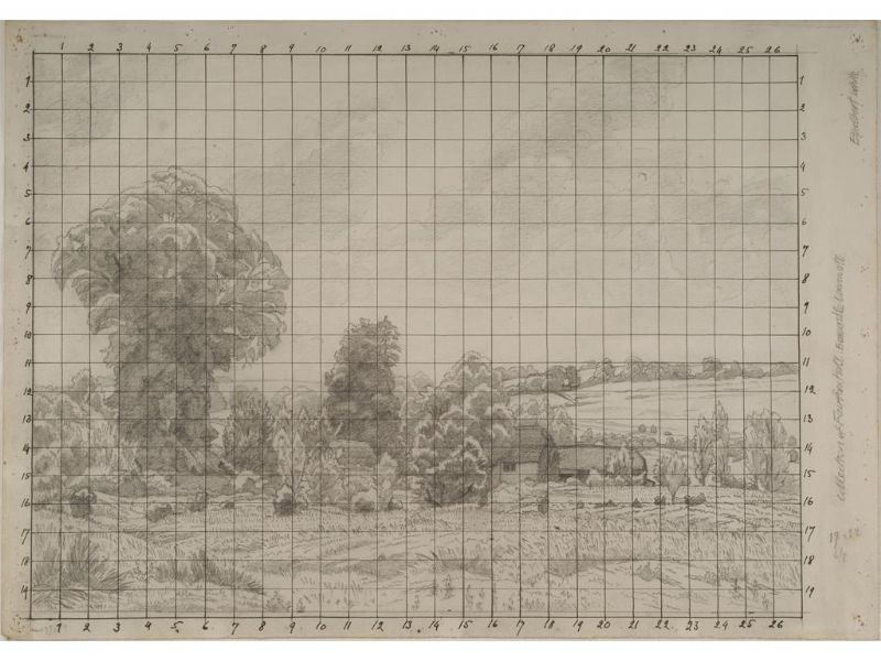 Pencil squared in ink for transfer