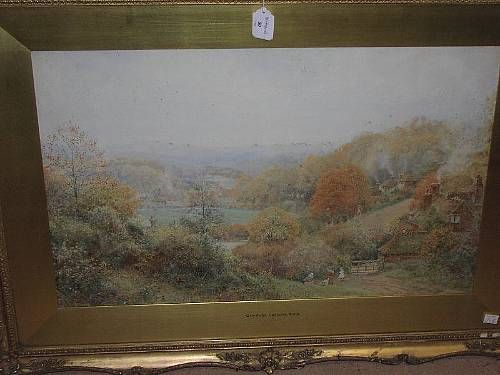 | An extensive village landscape with cottages amidst trees and a group of children in the foreground | |