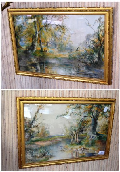 | A river landscape and a river landscape with pheasant at the water's edge | |