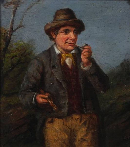 Traveller resting, smoking a pipe
