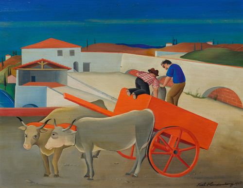 "Red Oxcart" (Italian landscape)