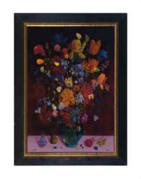 | Still life of flowers with butterflies, bees, beatles and a pink stone ring | |
