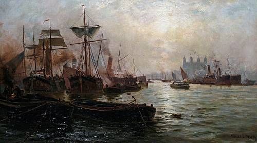 Shipping on the Thames, with the Tower beyond