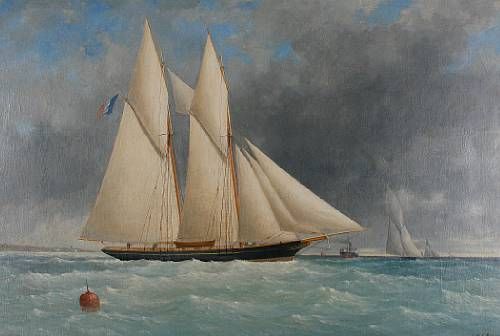 A schooner and other shipping heading out to sea