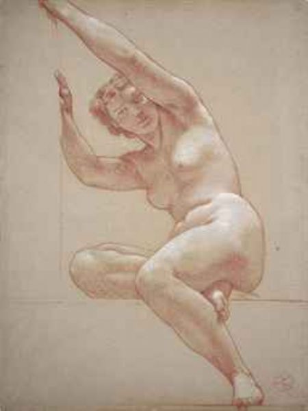 | Drawing red and white chalk, on blue-grey paper | |
