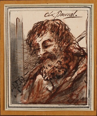 Study of a bearded man. Signed Ch. Parrocel. Drawing ink and wash on paper. Sheet size 98 x 81 mm. | |