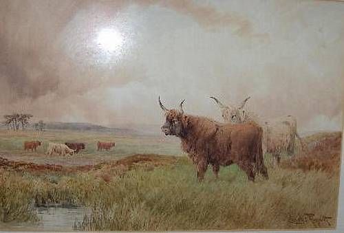 Highland cattle beside a moorland stream