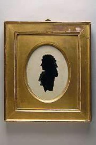 | A long bust length silhouette of a Lady, called Mrs. Bury, profile to the left, wearing dress with bow at the buffon, her hair i | |