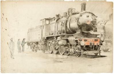 Locomotive avec trois mécaniciens