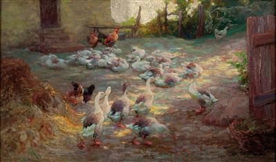 Hühner und Enten am Hof