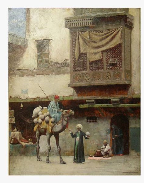 Arab street scene with figures and camel