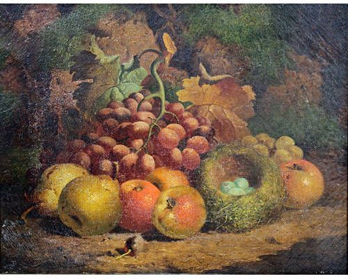 Still life of fruit, and a birds nest