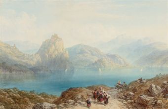 Figures beside an Italian lake