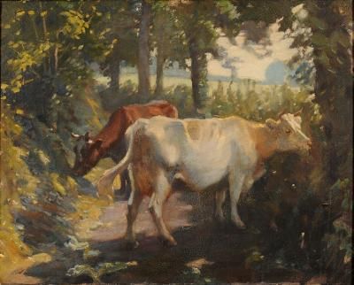 Cattle in a sunlit lane