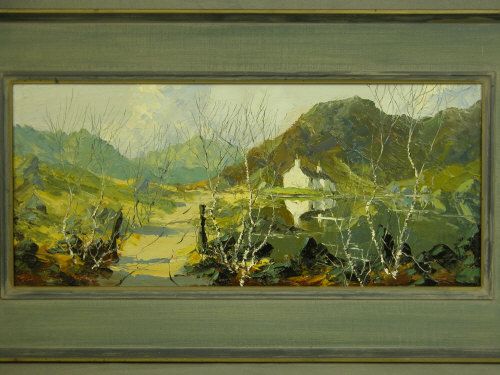 Snowdonia landscape with lake and cottage