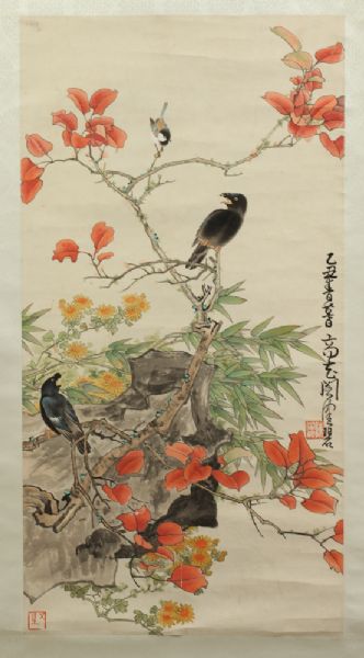 BIRDS PERCHED ON FLOWERING BRANCHES