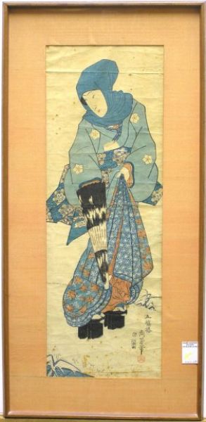 | the vertical double-sheet work featuring a maiden walking in the snow | |