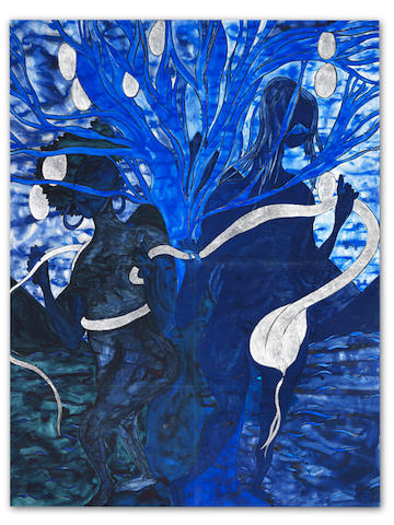 Gouache ink, charcoal and aluminium leaf on paper laid on canvas