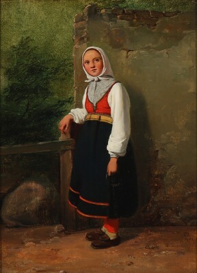 A peasant girl holding a bunch of keys