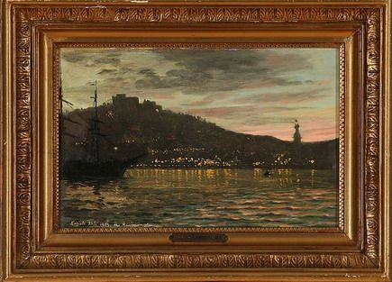 Harbor scene from Naples with Castel San Elma.