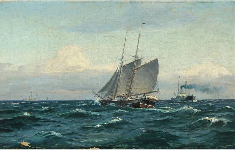 Seascape with sailing and motor ships