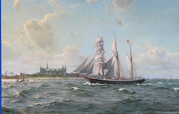 | Summer day with sailing ships off the coast of Kronborg Castle in Denmark | |