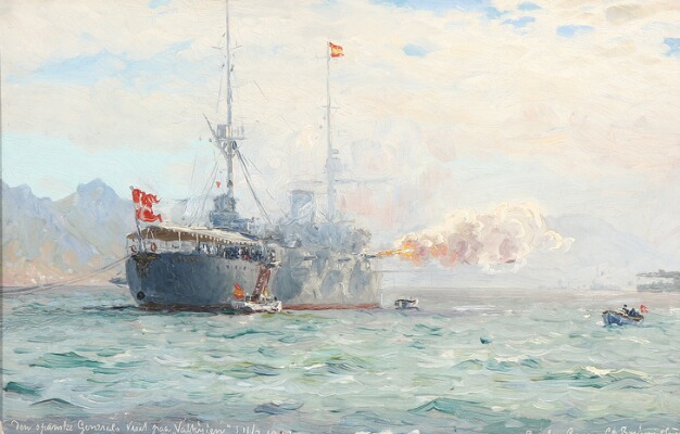 | The Spanish general visiting the Danish of war Valkyrien | |