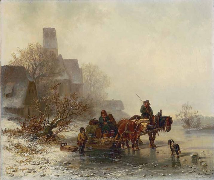 Bauer mit Fuhrwerk auf dem Eis