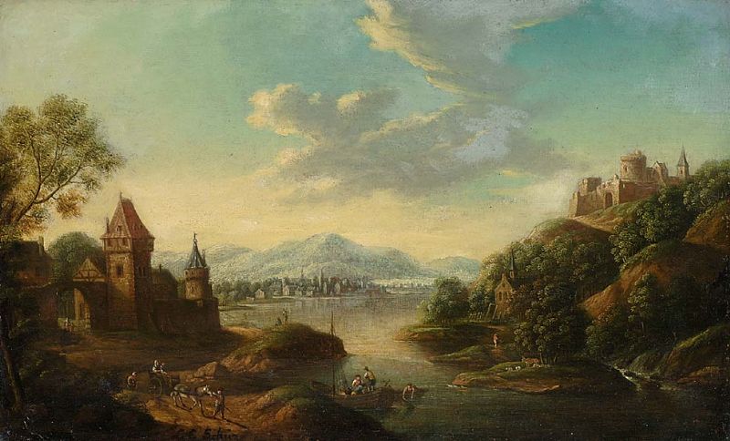 Landschaft mit Festung und Fluss