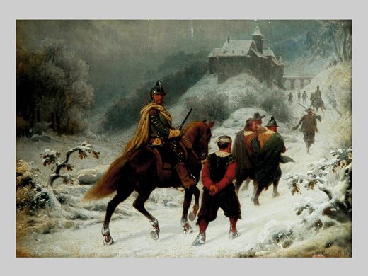 | Soldaten mit Gefangenen in Winterlandschaft (aus dem Krieg 1870/71) | |