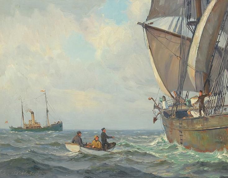 Seascape with a pilot entering a sailing ship