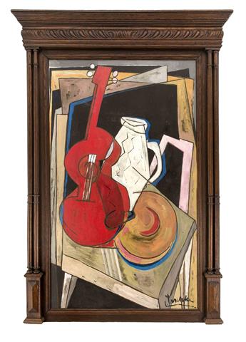Kubistisches Stillleben mit roter Gitarre