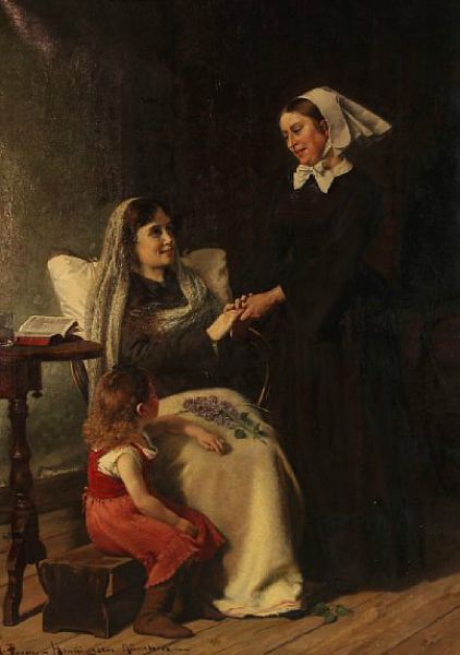 | A convalescent. The young mother and her nurse are exchanging goodbyes. | |