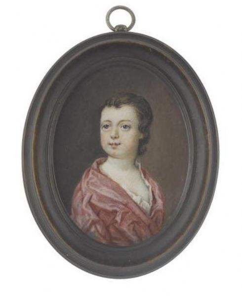 A Young Girl, wearing a crimson mantle over her white chemise, her dark hair worn short.