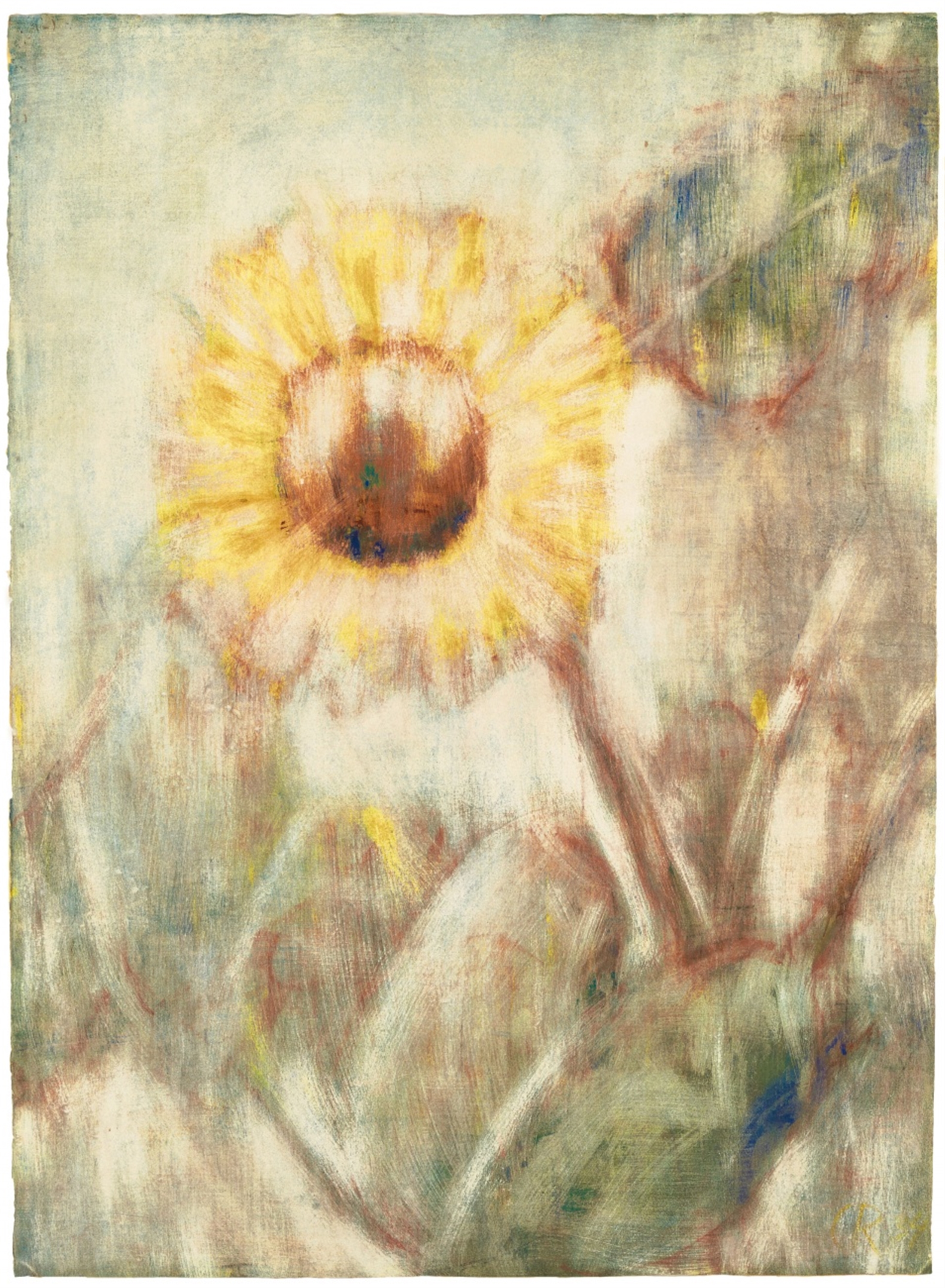 Tempera brushed and scratched, on firm watercolour laid paper