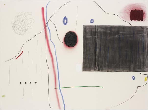 Pencil charcoal, spray paint, oil stick, oil on canvas