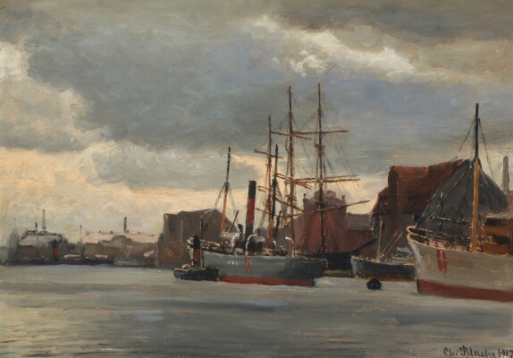 | Scenery with ships in Copenhagen Harbor. | |