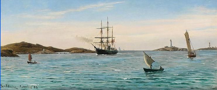 Seascape with sailing ships in Arendal.