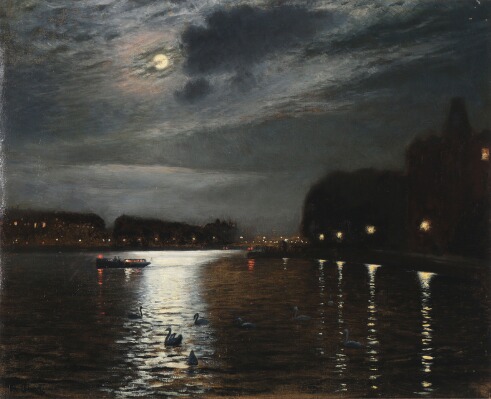 Sortedam Lake in moonlight