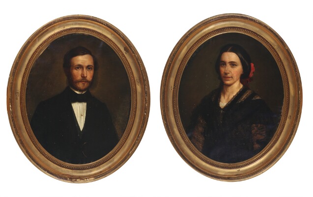 A pair of oval portraits