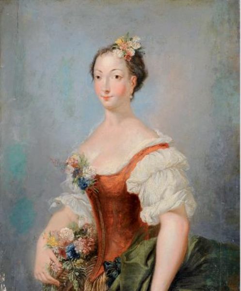 Portrait d’une femme au panier de fleurs