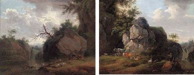| A wooded river landscape with shepherds and their flock; and A wooded river landscape with a shepherdess, her flock, a drover an | |
