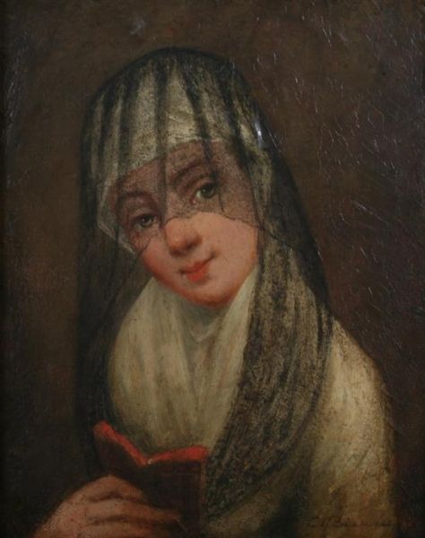 YOUNG GIRL IN A VEIL HOLDING A BOOK