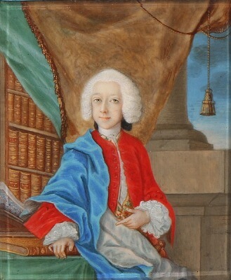 Miniature portrait of a gentleman in a library. Unsigned. Gouache, presumably on bone. 90×75 mm. | |